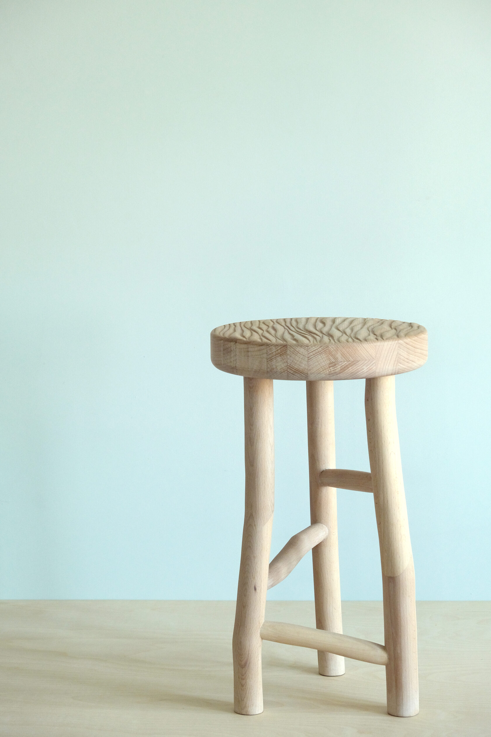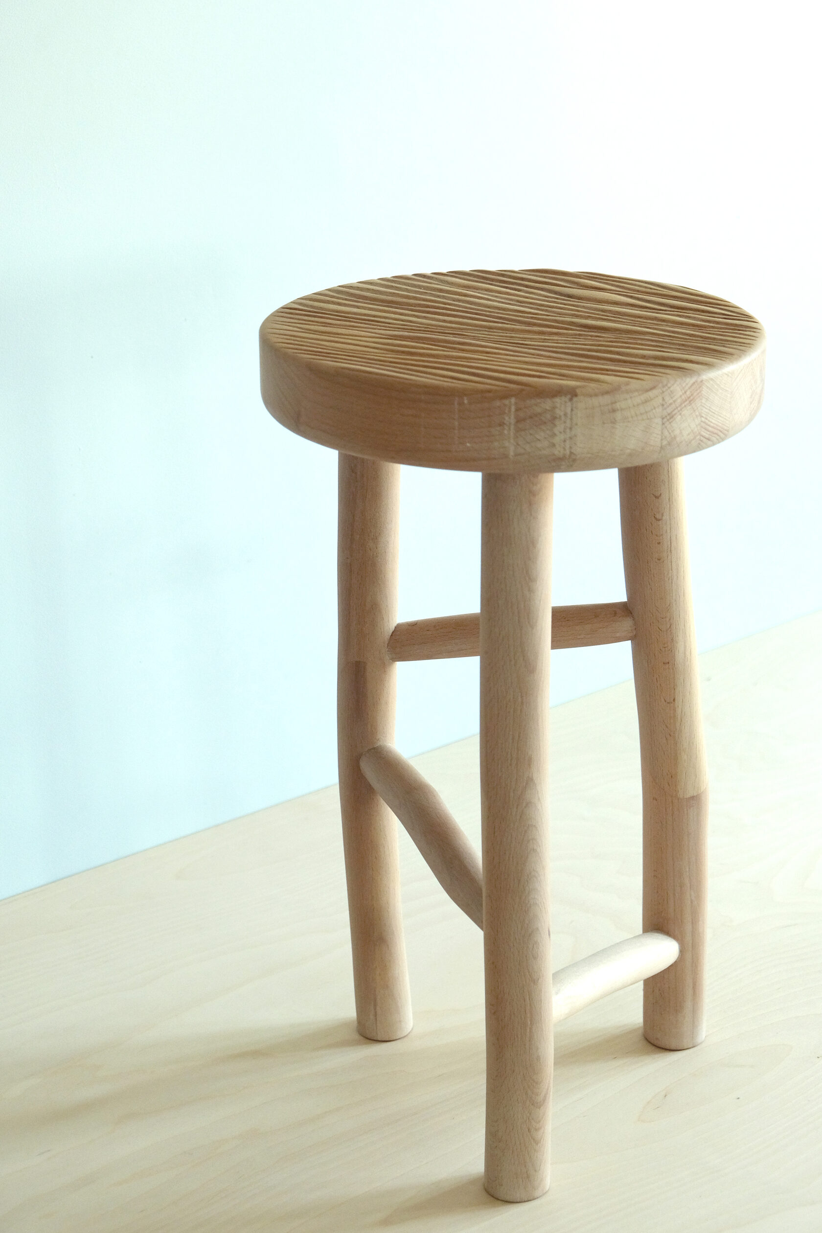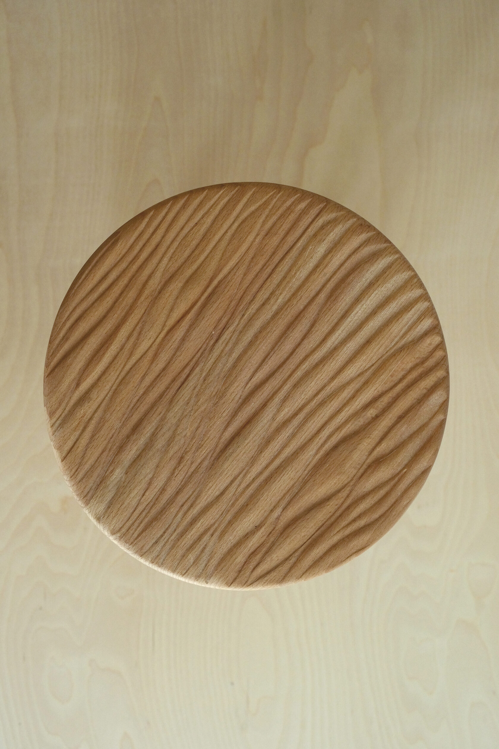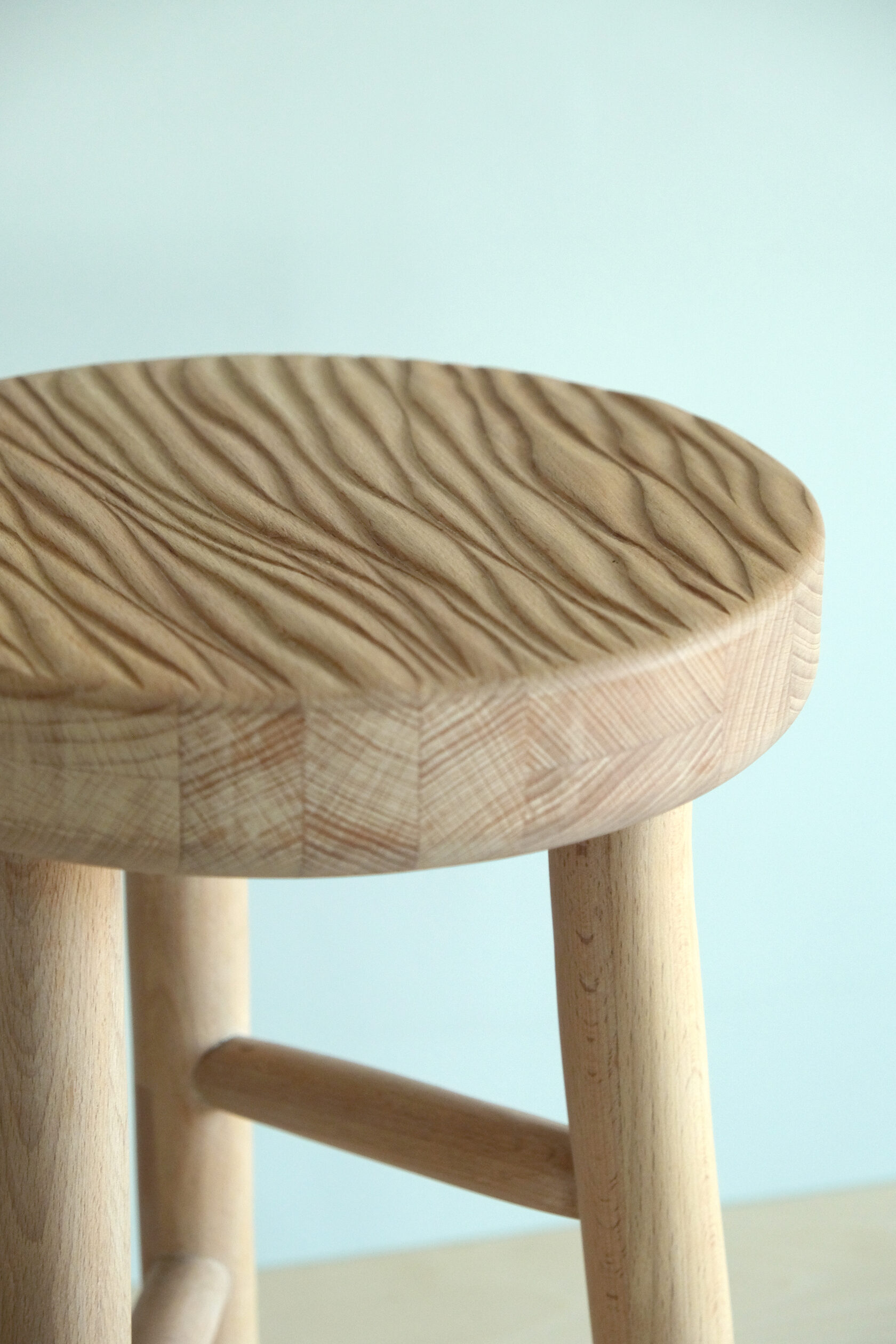 Трехопорный табурет, в большей степени предназначен для декоративных целей в силу своего компактного размера, отлично встает в угол комнаты. Изготовлен из массива Бука, покрыт масло-воском с белым тонером Сидушка выполнена с фактурной фрезеровкой "DUNE"